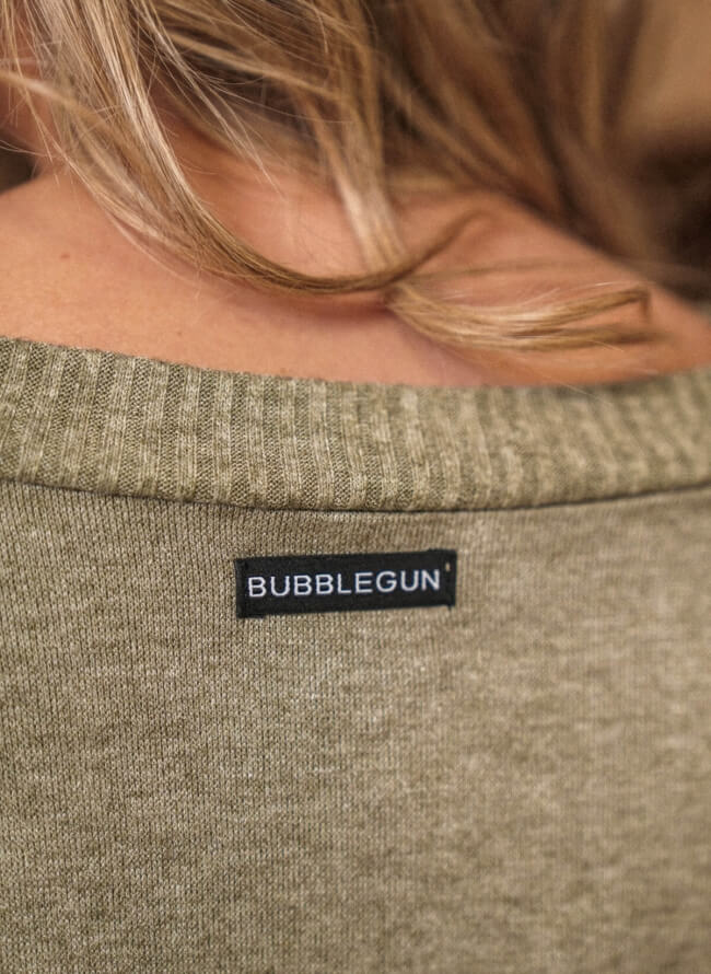 -Διαθέτει μαύρη υφαντή ετικέτα “BUBBLEGUN”.